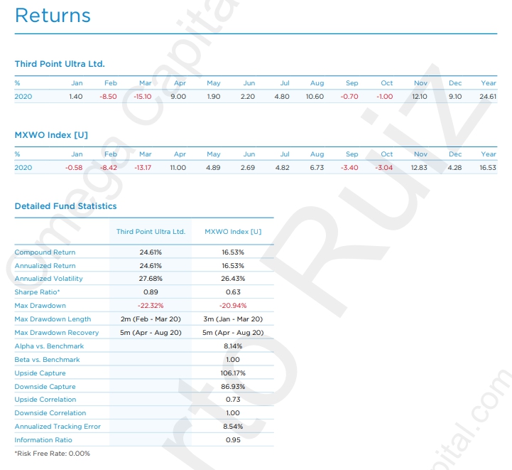 A principio de año Third Point anunciaba su posición relevante en Prudential, la compañía de seguros, y la conminaba a hacer una segregación de su negocio asiático. En opinión de nuestro gestor, la segregación y salida posterior a bolsa del negocio asiático de seguros de Prudential podría descubrir una parte importante del valor de la compañía, generando de esa forma valor a los accionistas. Después vino la Pandemia, que castigó duramente al sector asegurador, incluido Prudential (-5% en el año 2020). En su línea de movilización de las estrategias de las compañías en las que invierte con el objetivo de descubrir valor al accionista, animó a Walt Disney a centrar sus esfuerzos en el negocio on line (streaming) frente al off line (parques de atracciones). Disney en 2020 ha sido una de las grandes compañías que, después de una caída en vertical hasta marzo (-40%), ha terminado el año arriba un 25%, gracias, en parte, por su giro hacia el negocio de streaming.
